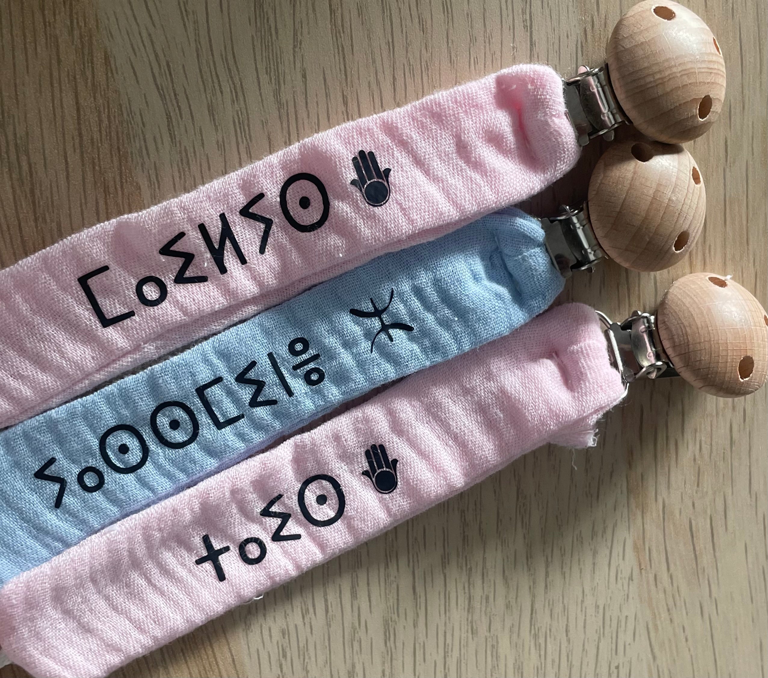 Prénom en tifinagh ou latin et symbole amazigh personnalisés, pour des instants doux et authentiques.