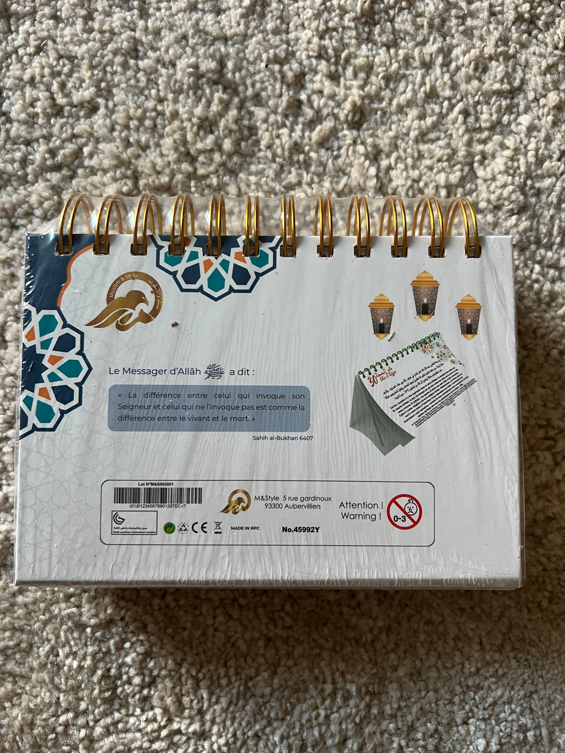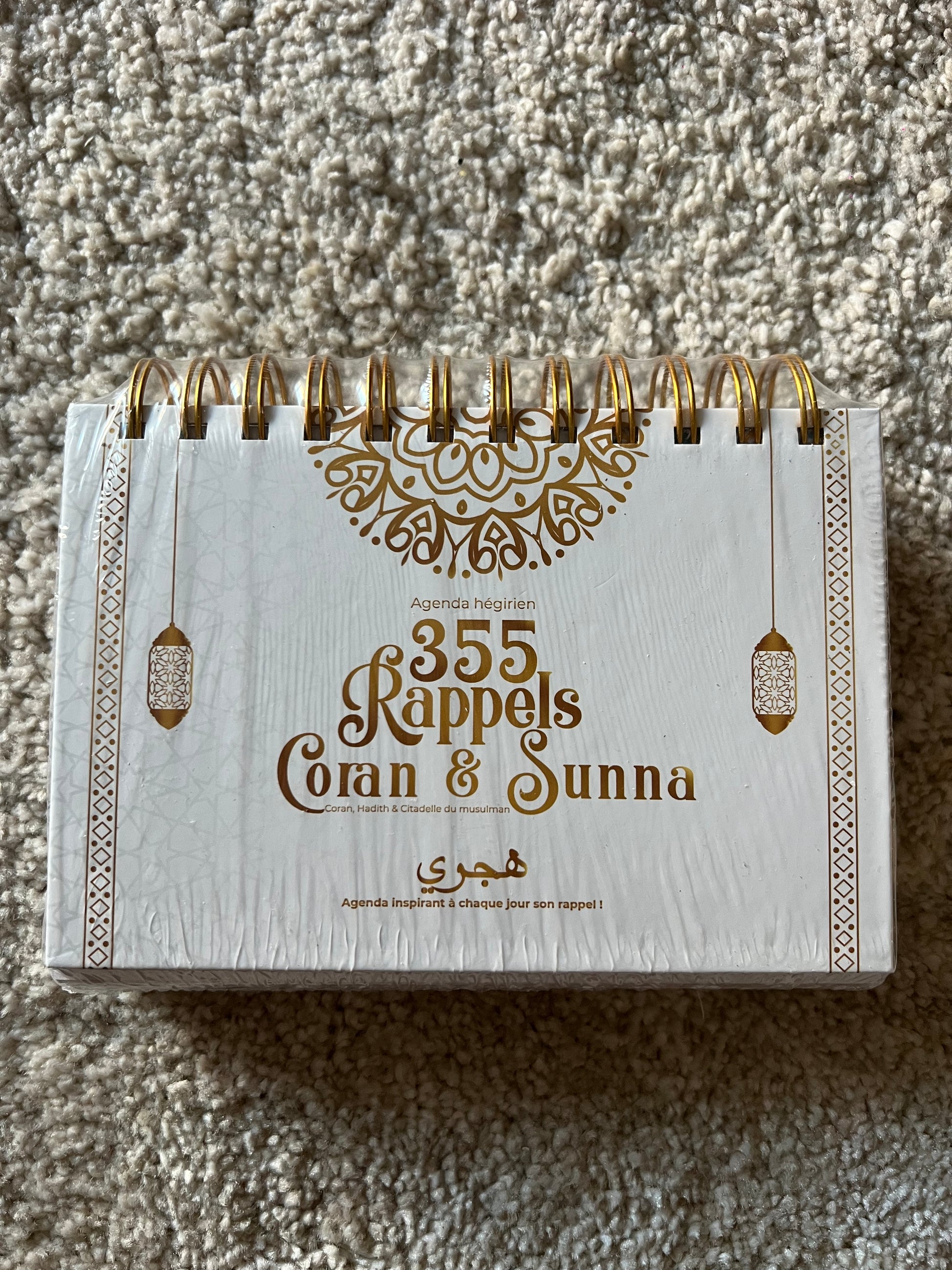 L’agenda “355 Rappels Coran & Sunna” est une source d’inspiration quotidienne, offrant à chaque page un rappel tiré du Coran, des Hadiths authentiques et de la Citadelle du musulman.