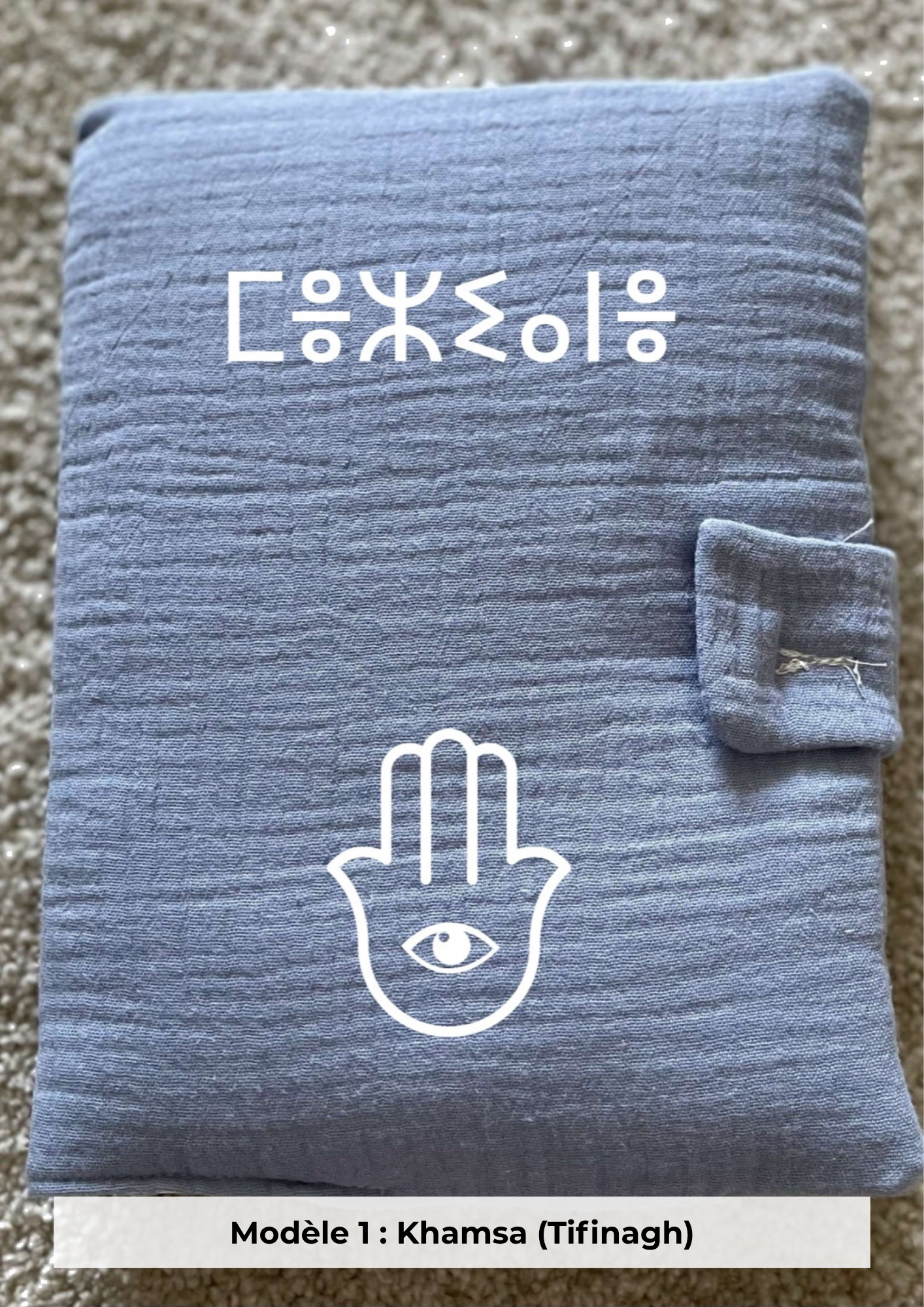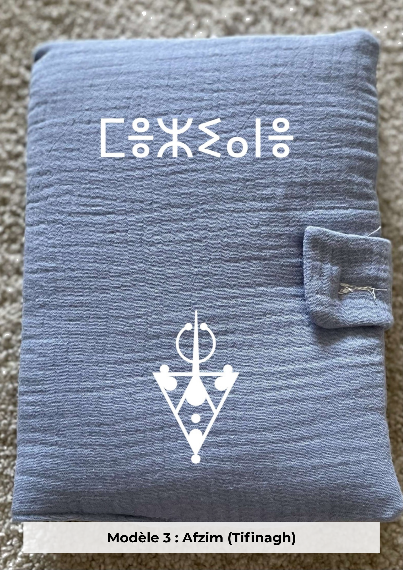 Le prénom est en tifinagh ou latin. Les symboles ne sont pas au choix libre : sélectionnez un modèle (photo 1, 2, 3 ou 4) qui associe alphabet + paire de symboles.